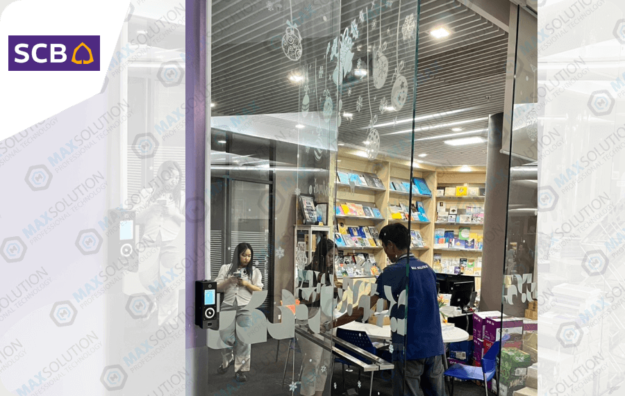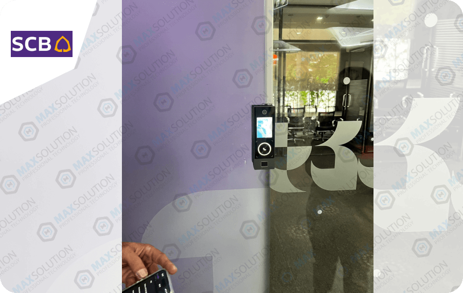 บริษัท ธนาคารไทยพาณิชย์ จำกัด (มหาชน) ติดตั้ง ตึก SCB Plaza east ใช้เครื่องสแกนใบหน้า H323 พร้อมติดตั้งชุดกลอนไฟฟ้า เพื่อควบคุมความปลอดภัย